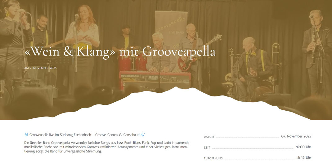 In Concert Festivalley Hochdorf Groove&Dine OMNIA Dierikon Brunch Rotseebadi Ebikon In Concert Brauiturm Hochdorf Firmenanlass Pistor AG Campus Sursee Groove&Dine Seehuis Giswil Groove&Dine Chillout Boswil Groove&Dine Sternen Gelfingen Groove&Dine Liebhaberei Rain Geburtstag-Party Caribbean VIllage Nottwil Musikfest Emmen Diplomfeier WBZ Sursee Personalabend JVA Wauwil Groove&Dine Rossstall Emmen LUGA Messe Luzern Gesangfest Hitzkirch Turnfest Hochdorf Schlossfest Heidegg Gelfingen Groove&Dine Löwen Rickenbach Kundenanlass Müller-SteinAG Rickenbach Brunch Rotseebadi Ebikon Künstlerfestival D4 Root Personalanlass Credit Suisse Zürich Hochzeit Magglingen Groove&Dine Löwen Hildisrieden Jubiläum Möbel Egger Eschenbach Sommerlunch Zulauf Schinznach Groove&Dine Linde Müswangen Apéro Leuenstern Hochdorf Vernissage Galliker Rotkreuz Groove&Dine Linde Weiningen GV Frauenzentrale Luzern Kundenanlass Vaporsana Hochdorf Groove&Dine Kaiserspan Gelfingen Firmenanlass Metanet Zürich Vereinsanlass FTBB Hochdorf Sommerfest Döttingen Groove&Dine Braui Hochdorf Jahresanlass Brändi Baldegg Gala Lili Sorglos Hochdorf Firmenanlass Raiffeisen Zürich u.v.a.m.